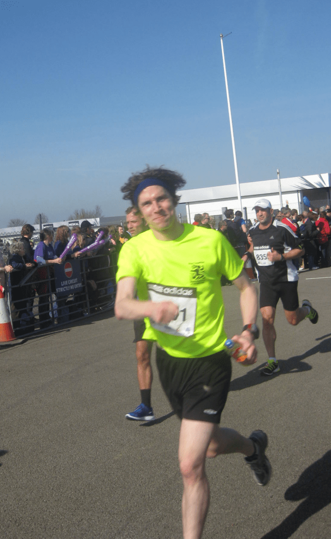 All of a sudden we were filtering back onto the track itself. One more lap, anti-clockwise this time taking in sections of the old circuit, and it would all be over. My dreams of a new official personal best had probably slipped away by now, but I still wanted to get under an hour and a half if I could. The last mile up Hangar Straight in the opposite direction took it out of me completely though, and as I crossed 13 mile mark and saw the finish line looming up, I simply could not muster enough energy to do the big sprint finish. So I showboated over the last few yards, waving my arms around like a fucking idiot to ramp up the volume of the packed crowd at the finish, and the roar I generated pushed me over the last few feet, and then that was it. I clocked it at 1:29:37, my official time was 1:30:36. I’m not sure quite which was right, but regardless, I was chuffed to find out I had come in 184th out of a field of around 10,000. It seems like I wasn’t the only one who had suffered in the sun.