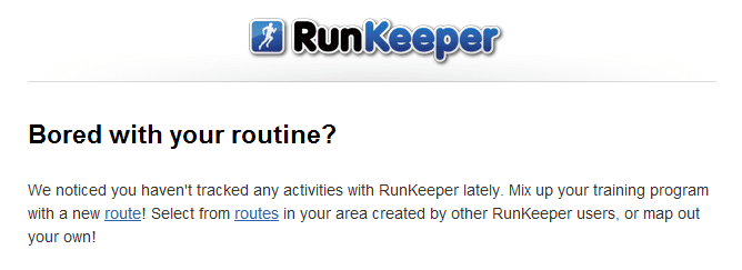 Runkeeper has sussed me out, stalking me again just like it did last June and helpfully pointing out that it has “noticed” I haven’t tracked any activities lately. No, Runkeeper, I bloody haven’t, since I have spent the last month and then some coughing up half my larynx over all my friends and work colleagues instead.