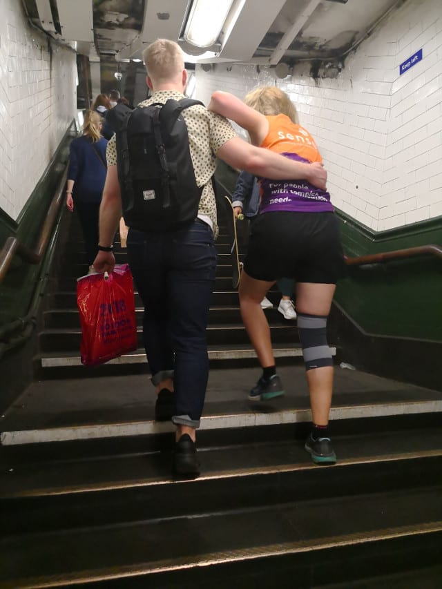 I grabbed my bag and headed up to see the MNDA post-race reception just over the road from the finish. I’d have loved to have stayed longer up there but due to a half hour delay getting my missing bag back from the baggage trucks and the fact that Sophie and Adam were due to finish an hour or so after I’d staggered over the line I had to rush through, but it was still lovely to catch up with Stephanie and the team who had helped us all over the training period with encouragement and various tips and bits of advice and whatnot. Apparently they had well over 100 runners out on the course running for them and were hoping to raise close to £300,000 which was bloody brilliant.