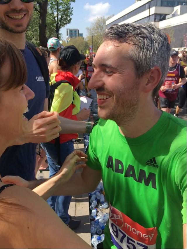 I bade my farewells and quickly scurried across St James’s Park with an MNDA sandwich in each hand, shovelling the delicious carbohydrates into my fat gob. I timed it almost perfectly and within five minutes of arriving against the barrier on Birdcage Walk I saw first Adam and then Sophie just a few minutes behind him. The older brother in me was so incredibly proud of seeing my little sister out there, looking dazed but not beaten, and I was absolutely made up for Adam bringing it home as well after he’d casually tossed in a ballot entry last year after being inspired to enter after reading my blogs for some odd reason, and then unexpectedly getting in first time of asking and ending up having to run a fucking marathon. Neither Sophie nor Adam had ever run further than 13.1 miles in one go before Christmas and now here they were, smashing up the London Marathon and raising a shitload of money for their respective charities in the process. It had been an unbelievably heroic and emotional day at the office for all parties concerned.