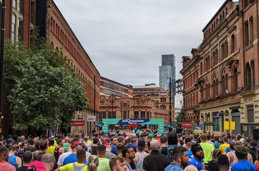 A crap night’s sleep the night before thanks to a house party on our cul-de-sac didn’t help matters, especially with the already-early 9am start time dropping back even further from 2021 onwards to 8:30. To make things even worse, my stupid brain woke me up wayyyyyy earlier than I needed to and so bleary-eyed and heavy-legged I staggered across town from station to startline, the route across central Manchester dotted with the occasional Saturday night casualty still going from the night before. It was time for my second race of the year, and my fourth go at the Great Manchester Run Half Marathon.