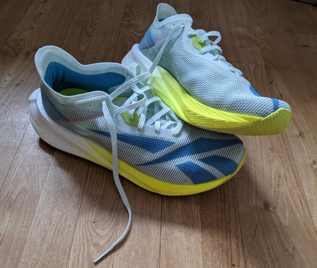 These were a lovely surprise. When I first heard Reebok were making a carbon-plated race shoe my interest was very much piqued as someone who was already a fan of the brand. A nice big slab of Floatride Energy foam which I’d loved so much in those FFE2s paired with a carbon plate in the forefoot to give a bit of extra spring, it sounded like a very intriguing proposition indeed.